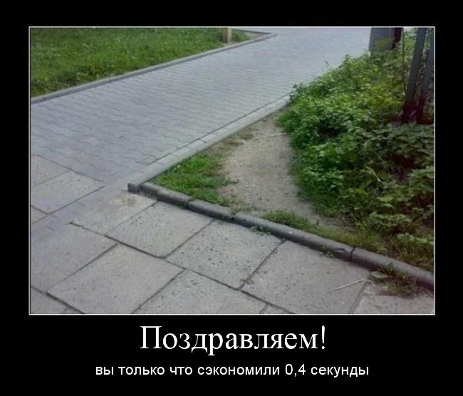 Но у меня есть куча других примеров. Когда в треугольнике дорожки проложены по двум его сторонах, а люди ходят по третьей. Лет 50 уже ходят.