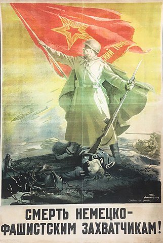Кстати, на плакате под "Смерть немецким оккупантам" не случайно подписано "И. Сталин". "Никакой пощады немецким оккупантам! Смерть немецким оккупантам!" - это цитата из речи главы государства от 6 ноября 1941-го года. Или классическое стихотворение Симонова "Убей его", где только после войны вместо "немца" стало "фашиста". Также будет и в наше время. После войны.