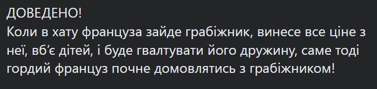 PS: Вообще ощущение, что у Макрона - раздвоение личности. С одной стороны нужно договариваться с Пу и нельзя "оставлять в изоляции", с другой - он должен быть привлечён к ответственности за военные преступления.