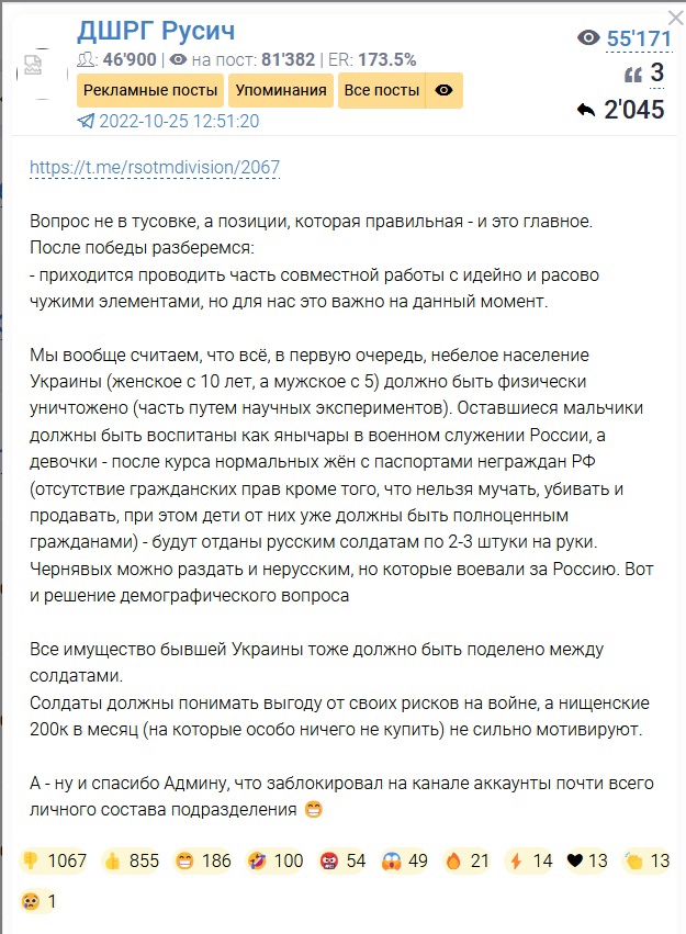 К бешеным собакам есть сочувствие, они не виноваты, что их заразили. К таким же "бешеным" гомосапиенсам сочувствия ноль, это - существа, крайне опасные для человечества, их надо устранять любыми способами. Получилось отдельных представителей отловить и со временем вылечить - отлично, приходится пока 99% устранять физически - тоже хорошо, когда получается.