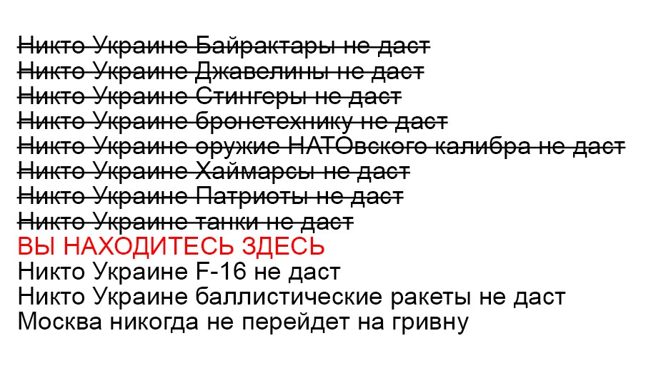 Как однажды упоминал тут пословицу: "Страшно ухватить тигра за хвост, но ещё страшнее его отпустить". Хуйло сейчас именно в такой ситуации. И это огромная проблема – пациент уже почти невменяем, тупо закусил удила и прёт ва-банк. Сейчас на кону уже не "какая-то там страна", а его личная жопа.