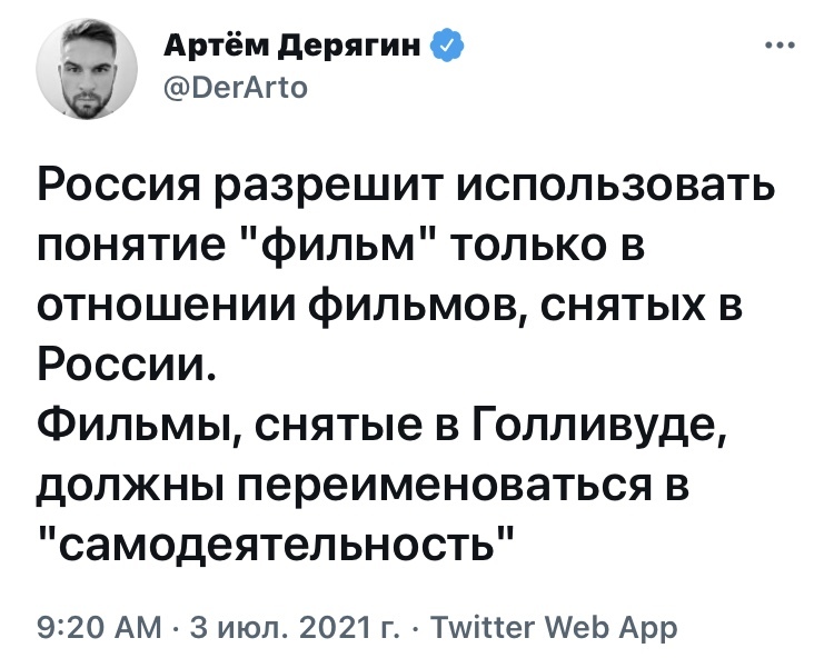 "После того, как президент утвердил понятия «Коньяк России» и «Шампанское России», на АвтоВАЗе готовятся к выпуску «Мерседесов России», а Центробанк введёт в оборот «Доллар России»."