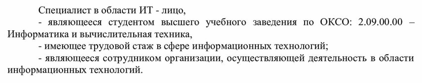 - являющееся сотрудником организации, осуществляющей деятельность в области информационных технологий.