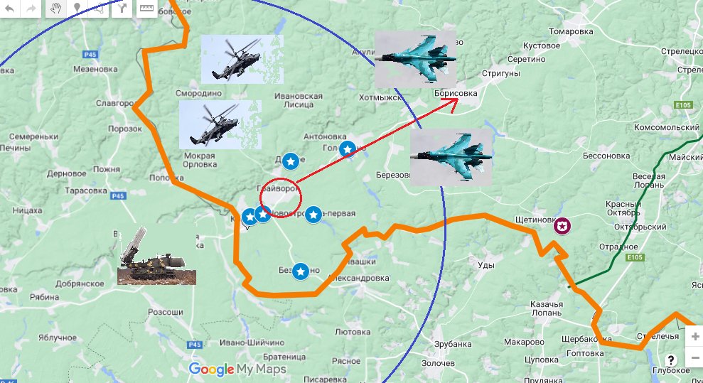 МосквоюБахмУтом!"На 0_:_38 - справа поворот из Грайворона на Новостроевку, а слева - что-то прилетело (как раз в направлении на кружок).