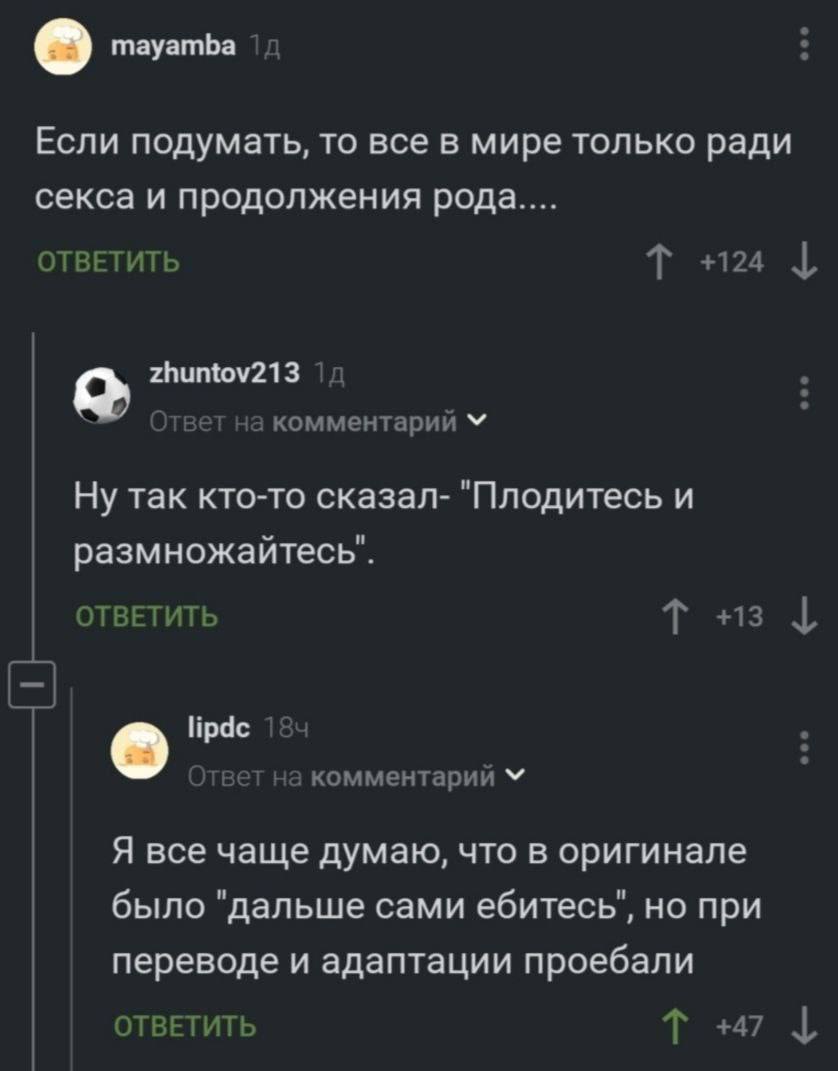 И вселился господь в ближайшую к нему женщину, дабы не впал Хосе в грех содомии и мог выразить свою любовь единственным завещанным господом способом (крики из зала: Истинно так!). И возлёг Хосе с нею под ликом господним дабы совершить священный завет Его - возлюби Бога и ближнего своего! Аминь!