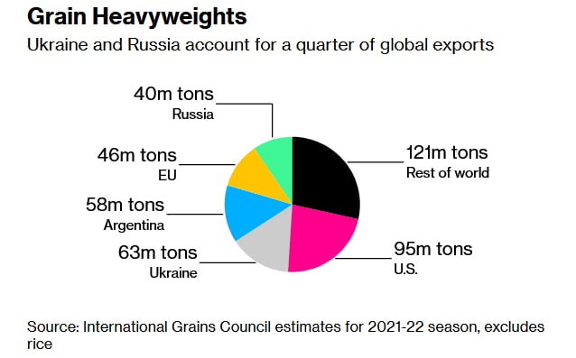 "Честно говоря, ящик Пандоры открыт - к лету начнется реальный ужас мирового масштаба - глобальный голод неизбежен (Россия и Украина были основными поставщиками зерна в мире, в этом году урожая будет меньше, а логистические проблемы доведут катастрофу до пиковой точки)."