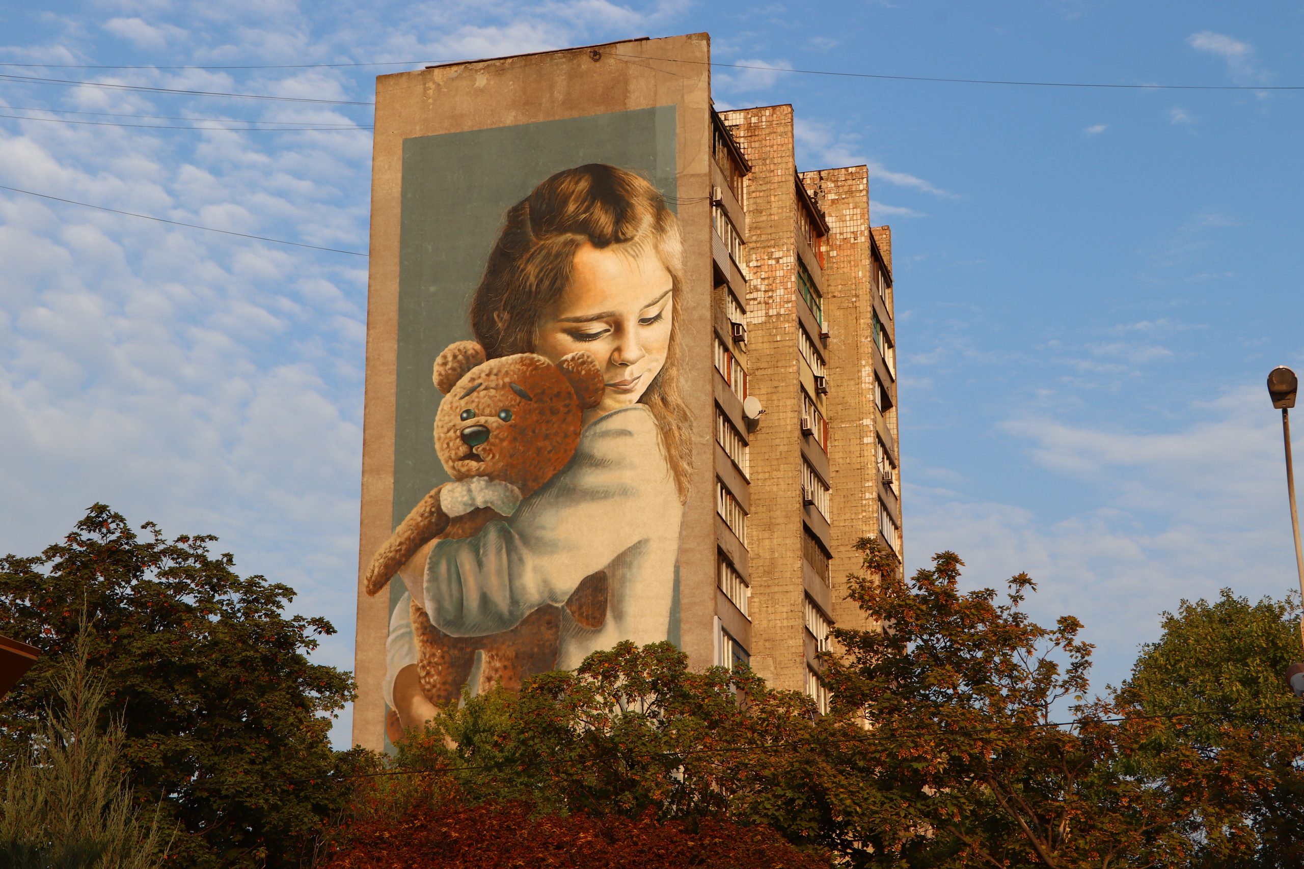 Эта девочка 24.01.2015 вместе с мамой попали под обстрел града. Тогда погибло 30 человек и 100 ранено. Девочке оторвало ногу, а мама погибла. Неудивительно, что орки уничтожили тот мурал, хотя он не пострадал в 2022 году.