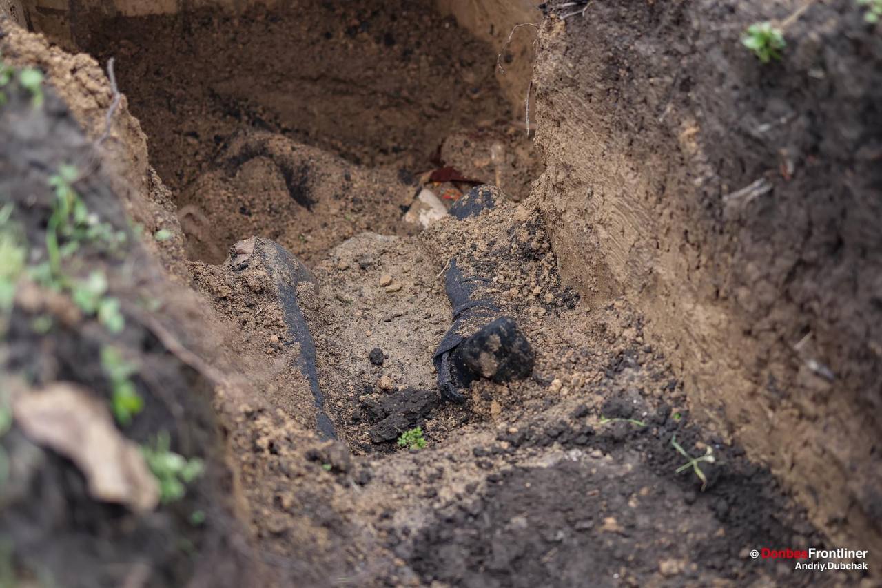 "Село Львовские Отрубы, освобождённая Херсонщина. Два тела гражданских в яме-окопе во дворе, где жило подразделение российских оккупационных сил.