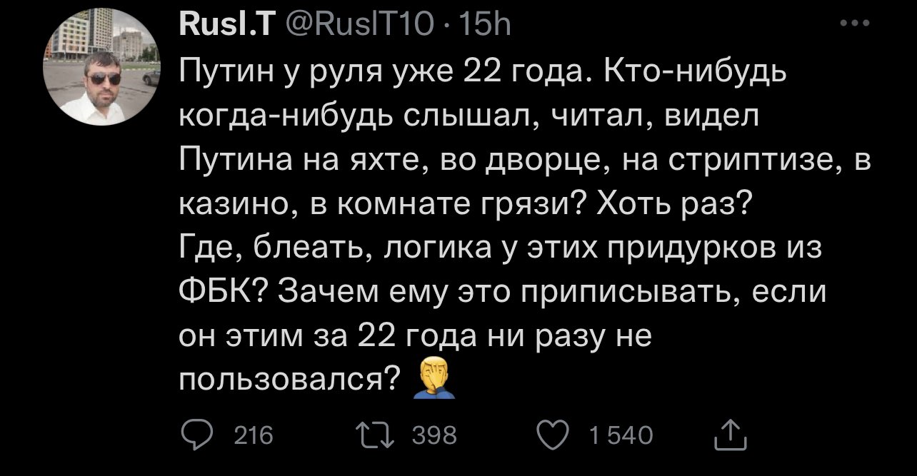 Но похоже подтверждается то что я часто читал про Хуйло, что он не стратег а тактик, и в данной ситуации похоже он изменил тактику и использует затяжную войну и полную экономическую изоляцию чтобы восстановить столь любимый им железный занавес и создать заново СССР в новой итерации. Если так, то да, все идет по плану, Песков не врет...
