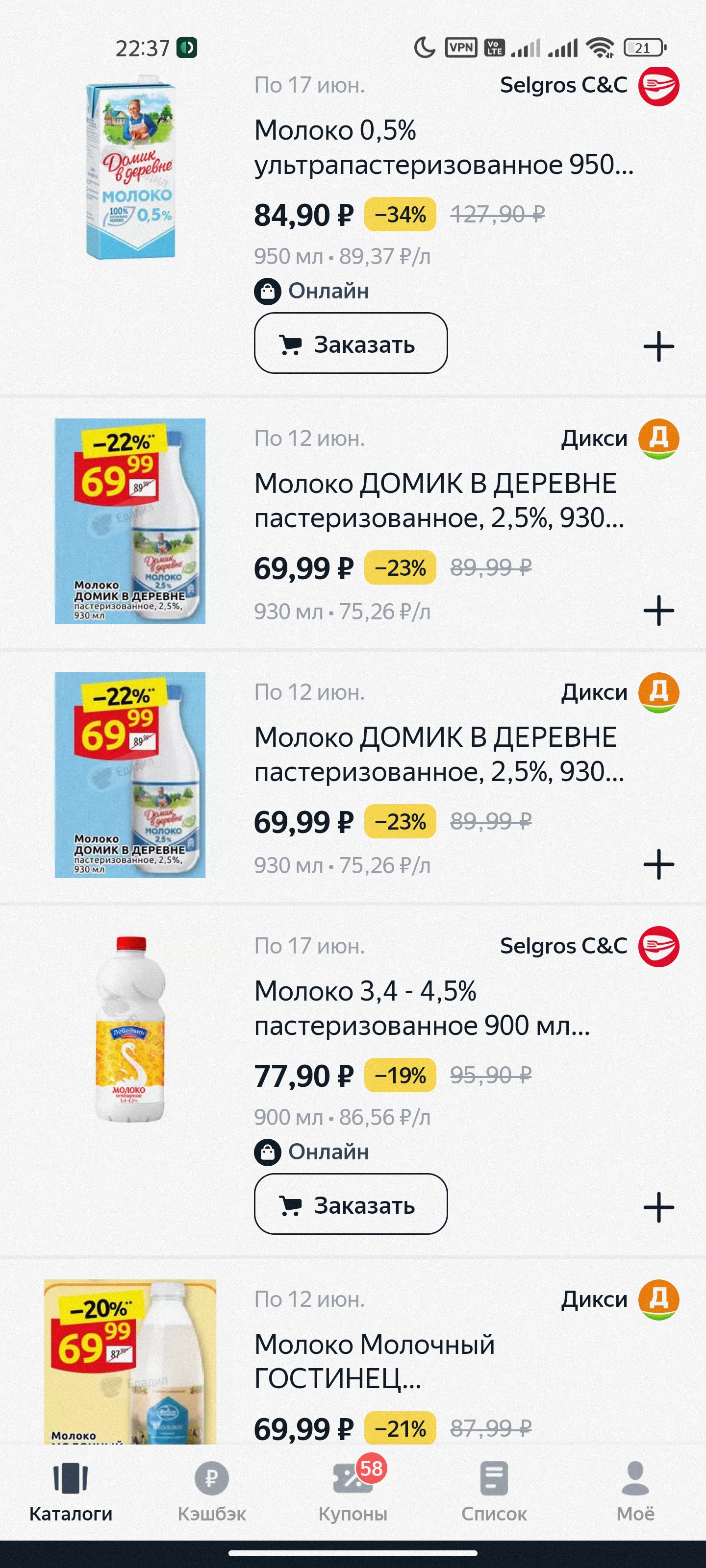 пример: сыр natura 45% 200г - 178 рублей в ленте. 400 г - 428.48р в приложении.
