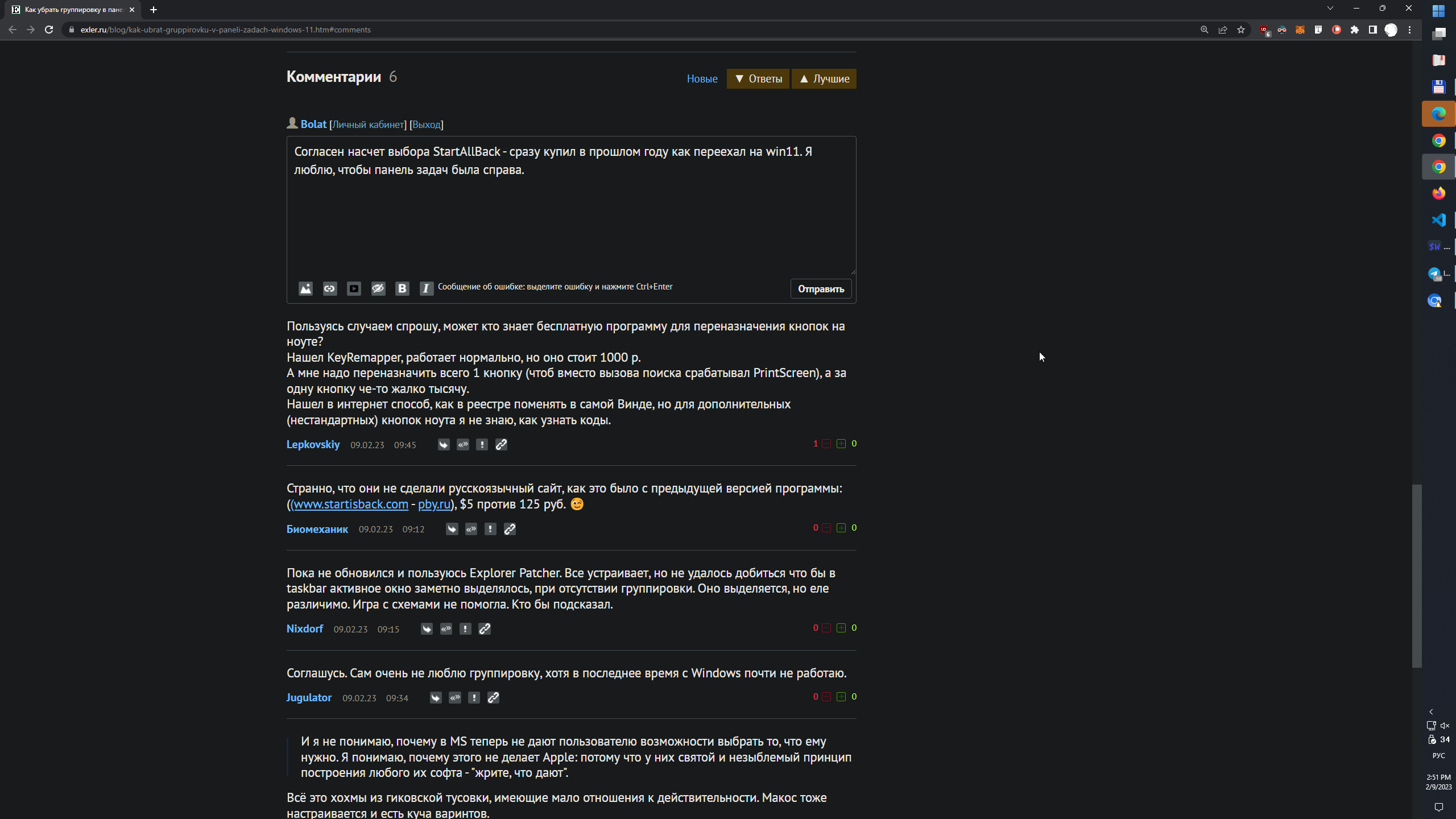 Я на нем покупал за 125 рублей, ключ подошел к самой свежей версии StartAllBack для Windows 11.