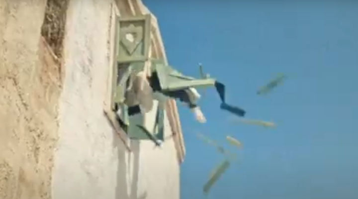 На секьюрити открывается чемодан и отдается бутылка сверху.