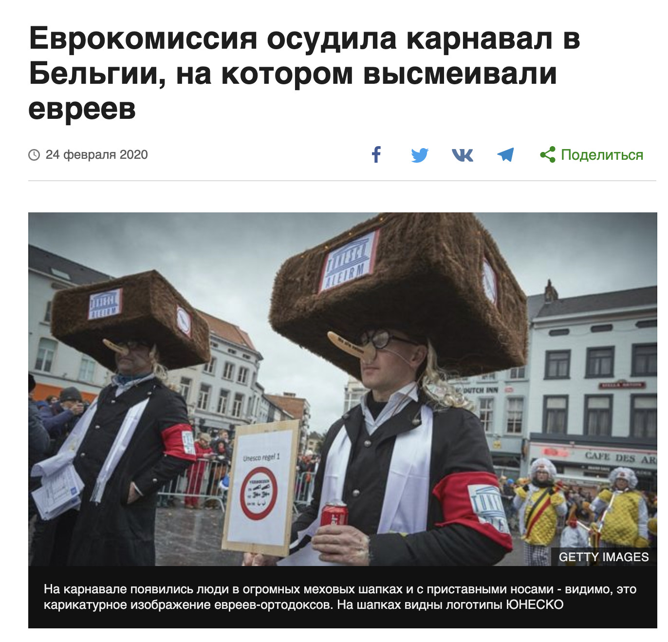 «Еврокомиссия осудила карнавал в Бельгии, на котором высмеивали евреев»