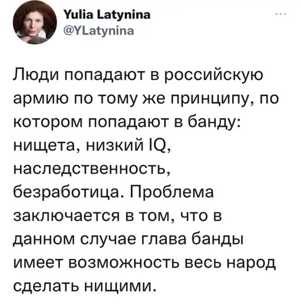 Вот интересный анализ, почему у большинства россиян эта война вызывает эйфорию, вне зависимости от положения дел на фронте: ridl.io