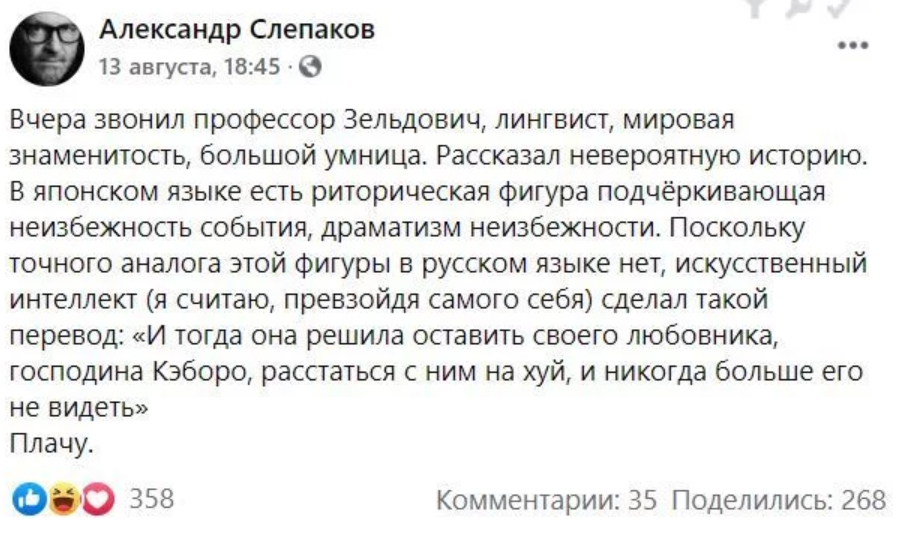жопорукость разработчиковтехническая ошибка. Вам, думаю, и самому понятно, что эта ошибка будет исправлена, ибо факап совершенно абсурдный.Но сам принцип, по которому сработал "триггер" у фейсбуковского ИИ – достаточно верный, не так ли? Ведь аналоги той же нашей 282-й статьи есть практически во всех странах, не так ли? И за употреблённые "в том самом смысле" подобные исходные слова – вполне могут начистить морду лица даже и в реальной жизни, не так ли?..