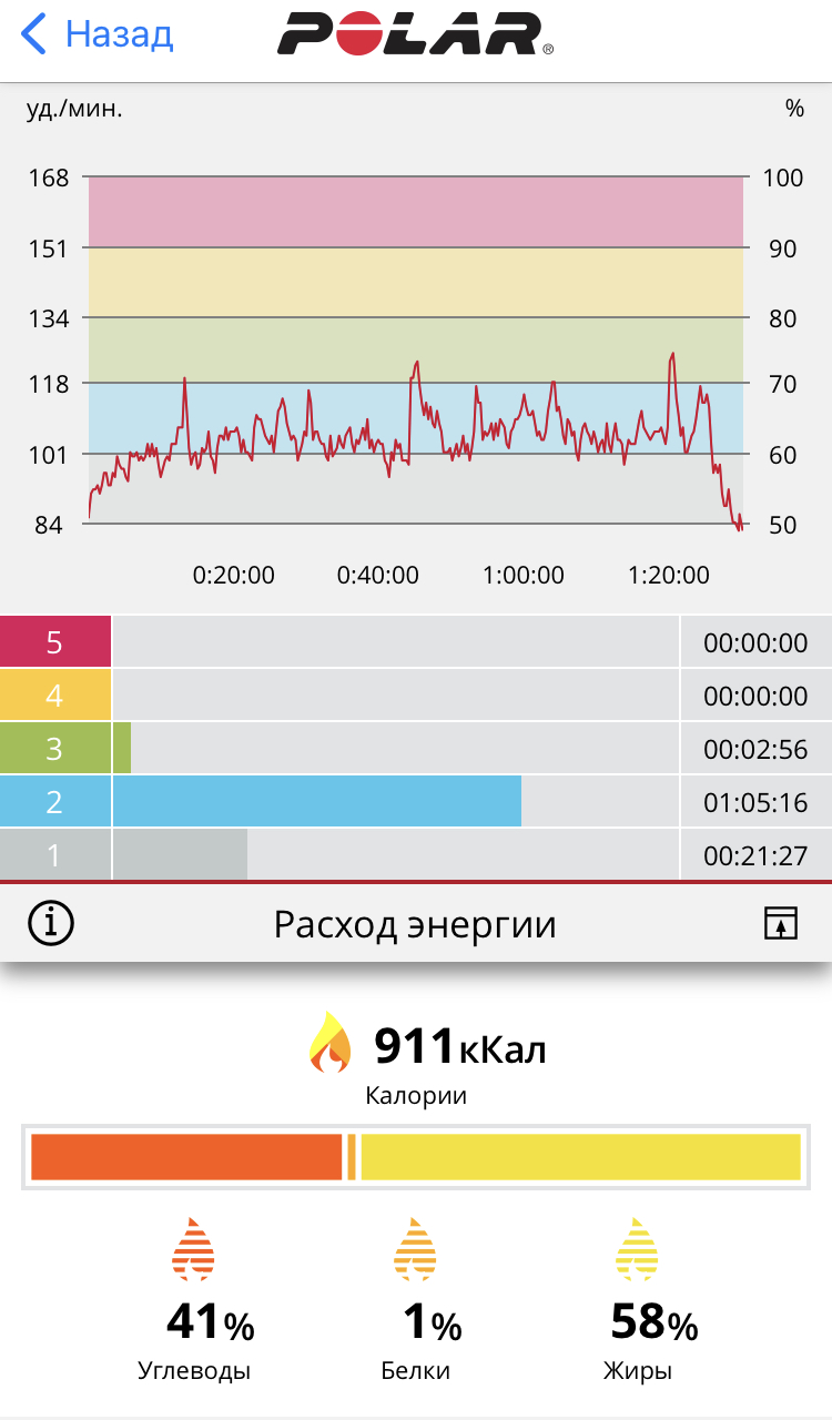 Но это тренажер, так что скорость там «идеальная в вакууме». На тренажерах правильнее на мощность ориентироваться. И на пульс. Исходя из них (мощность/пульс) — болтал ногами полтора часа); но в этом и была цель, после силовой/функциональной тренировки: сжечь немного жира