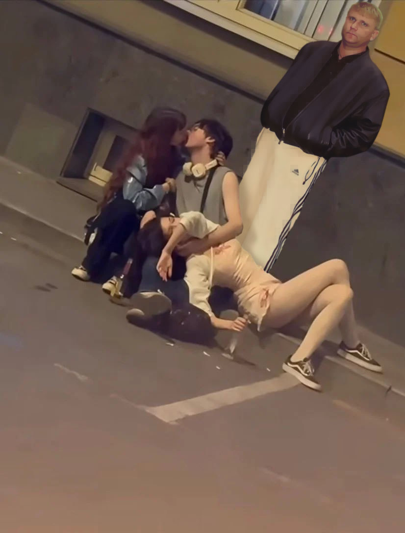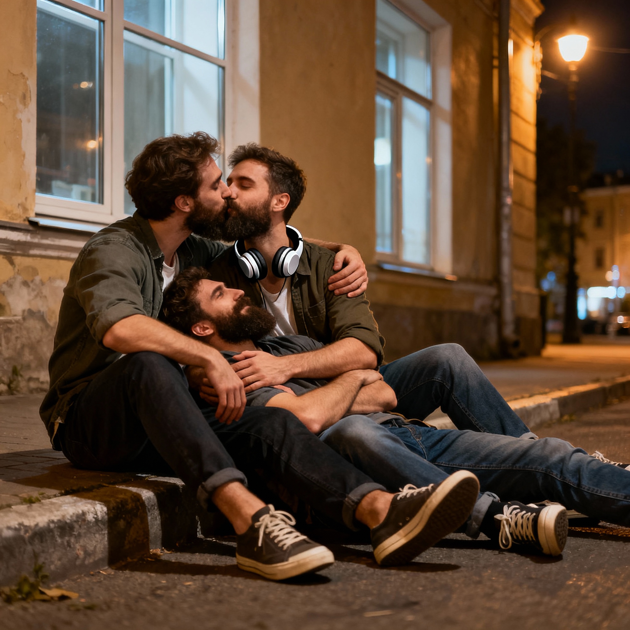 Отдаю свой голос за парня в наушниках со спящей девушкой в кедах на коленчх.