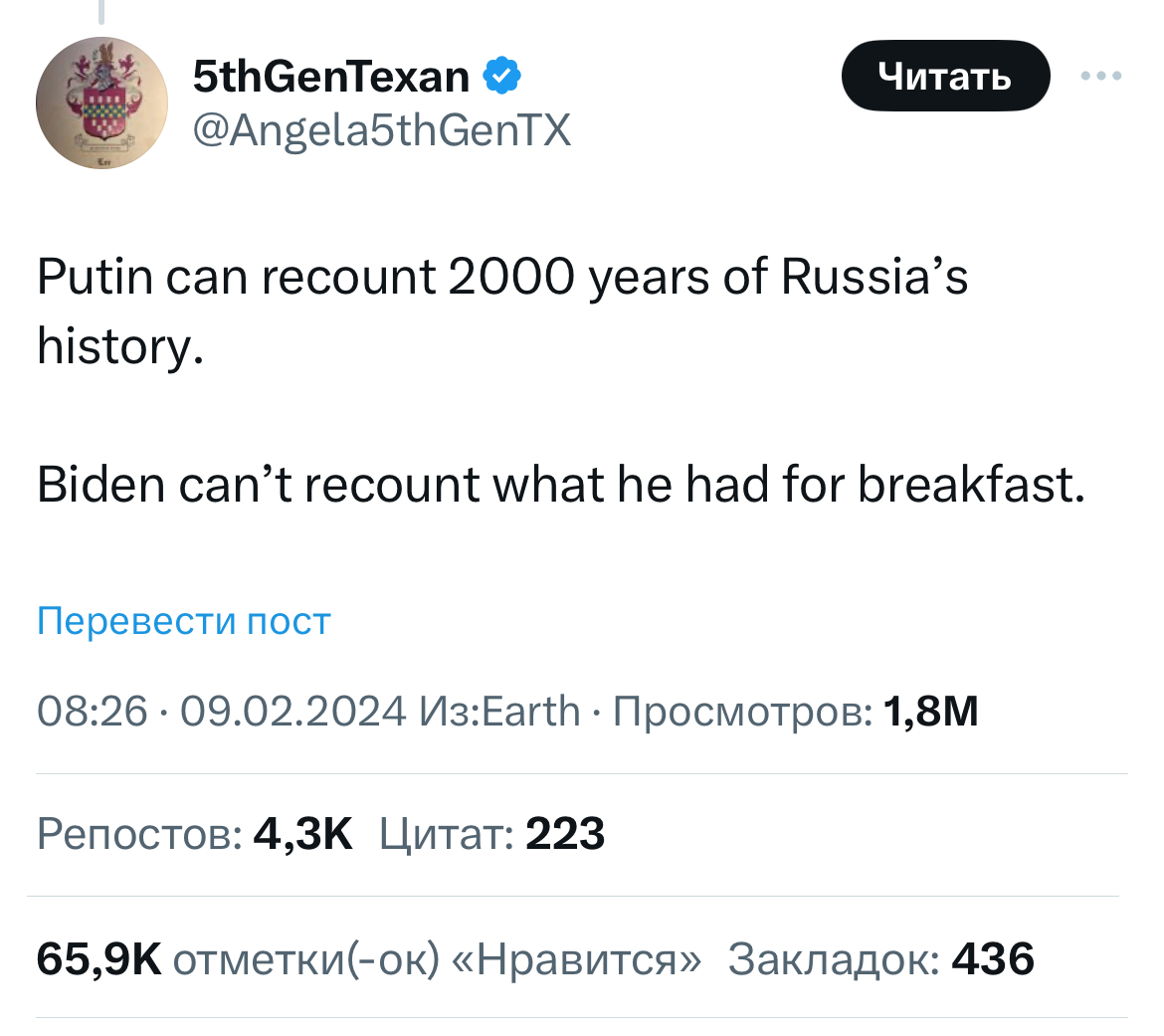 Из самых очевидных примеров - Курилы, Кенисберг? Это что, исконно русская земля? Или Чечня (Ичкерия), которая никогда не хотела быть частью России. Если основание, что что-то когда-то кому-то принадлежало, достаточное, для передела границ, с фига ли она сама не раздаст, все эти территории соседям? Тот же многострадальный Крым, сколько веков был в Османской империи? И еще пораньше, чем в Российской империи. Ну ладно, Украину вы не признаете как государство, хотя это бред, но что же туркам не отдаете Крым - это государство без сомнения существовало, они и все карты соответствующие могут вам показать, как и вы Карлсону. А уж сколько на вашей (или не на вашей) территории тюркоязычных коренных народов живет?+ Самое время туркам озаботиться как нарушаются права "братьев", навязывается им русский язык вместо исконного тюркского и пойти войной для защиты их прав?
