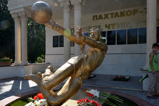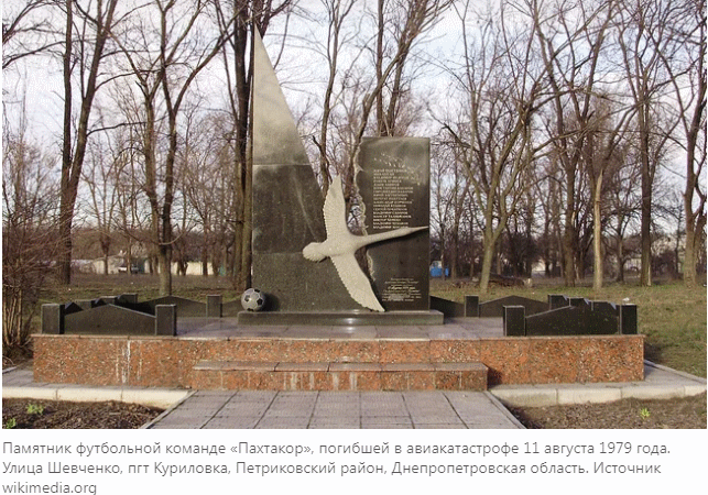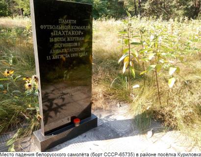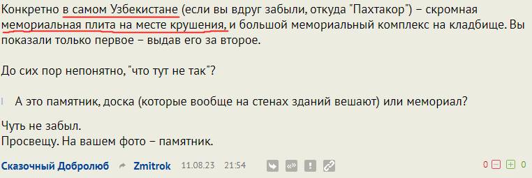 Конкретно в самом Узбекистане (если вы вдруг забыли, откуда "Пахтакор") – скромная мемориальная плита на месте крушения, и большой мемориальный комплекс на кладбище. Вы показали только первое – выдав его за второе.