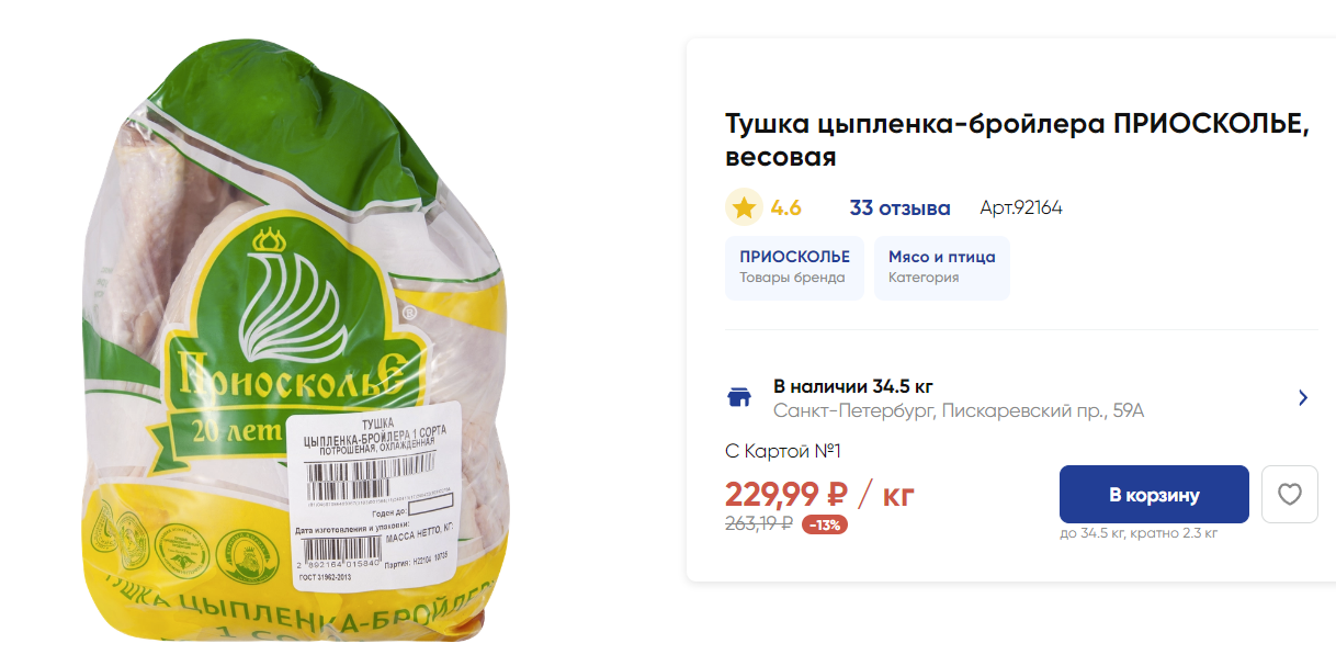 Хотя там же обычные куры (охлаждённые!) начинаются от 165.