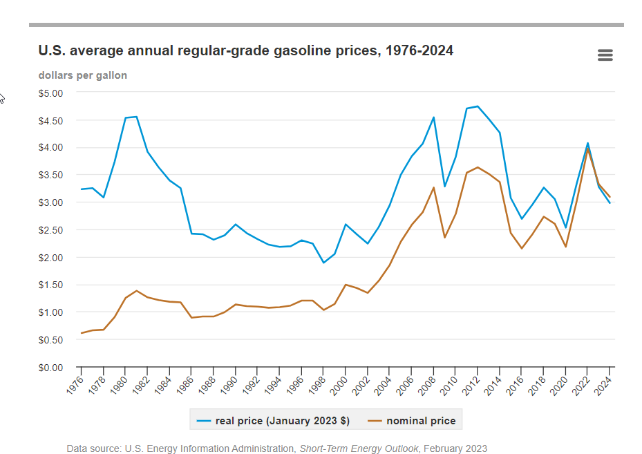 "Копейки" бензин в 1997 г стоил в последний раз (меньше доллара за галлон)