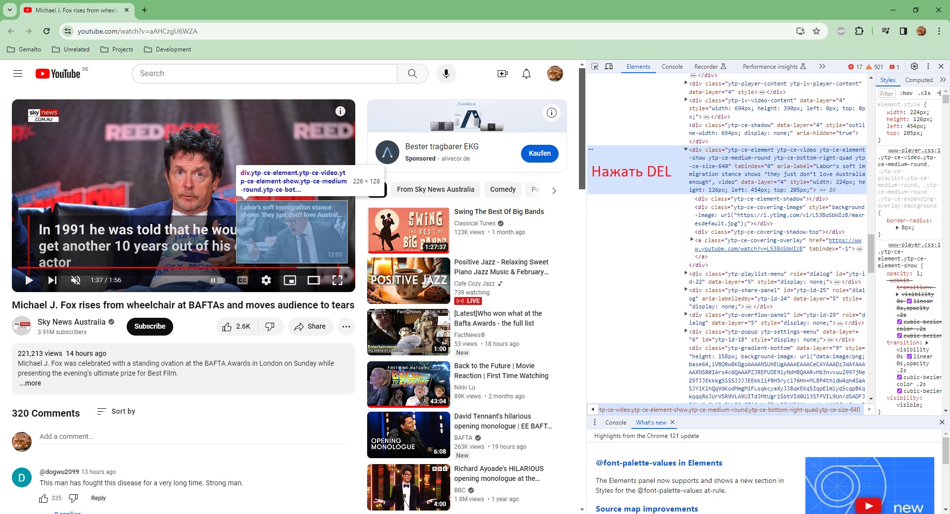 - жамкаем мышкой крестик (фокус ушел на рекомендации, которые теперь строчка "смотреть другие видео")
