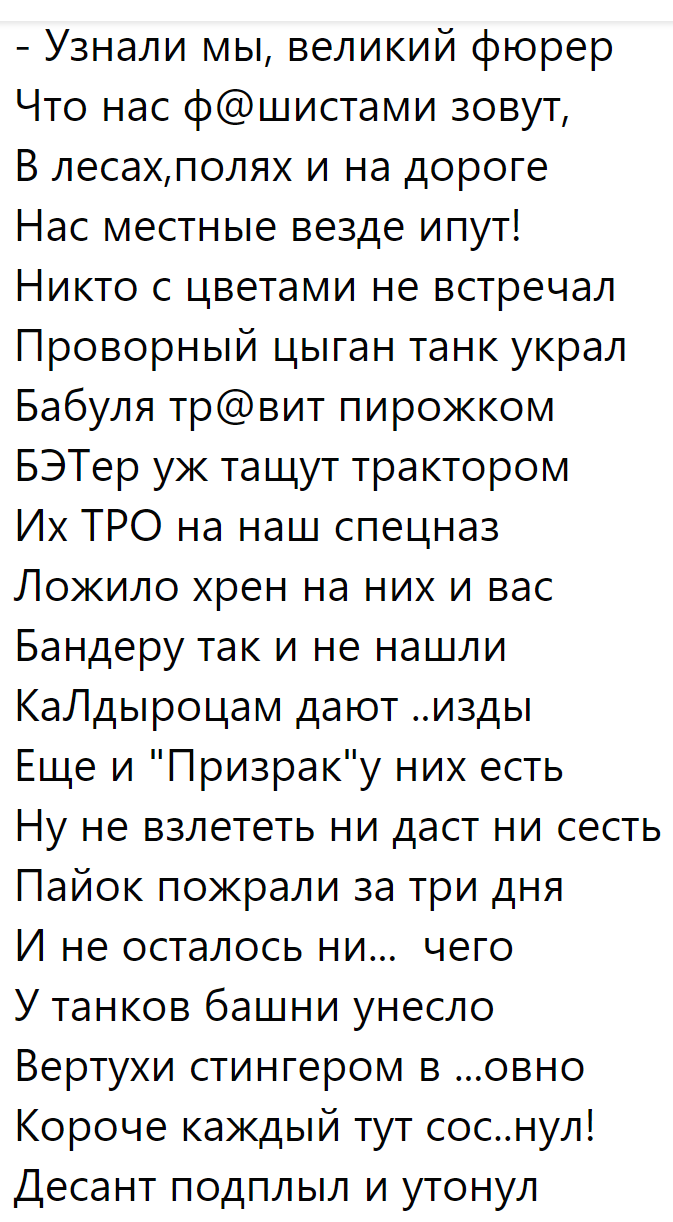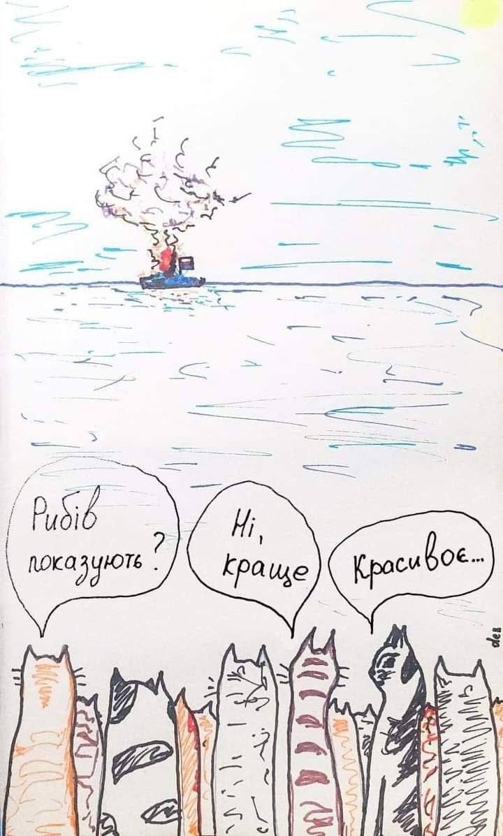 "В настоящий момент наблюдается массовое движение российских войск через Антоновский мост - убегают!.. Видимо, мы снова грохнули кого-то из начальства. Такое уже было несколько дней назад, во время седьмого раза.) С месяцем начала операции вас, ребята. Бегите, не запыхайтесь"