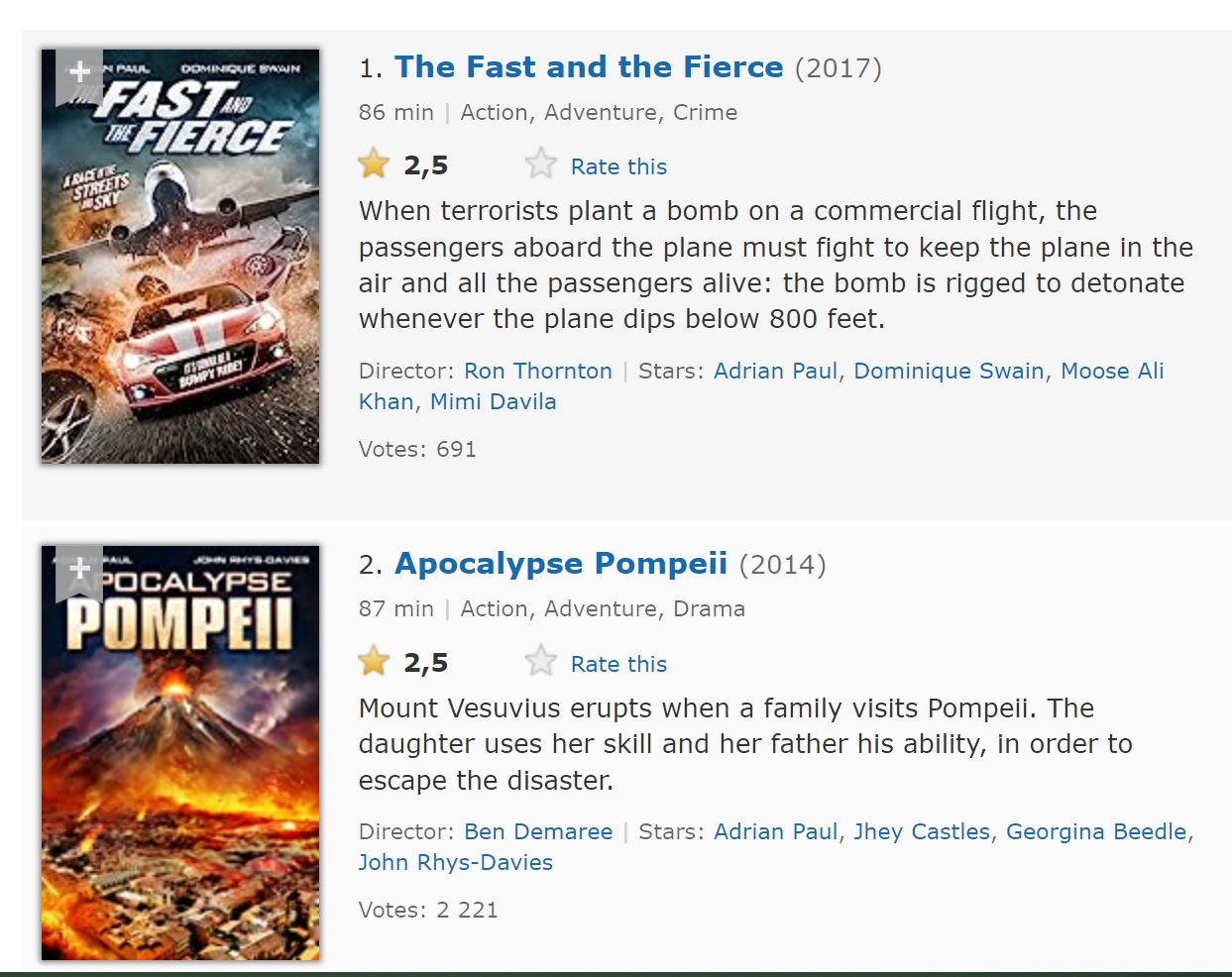 Ну и всякие приключения и боевики вроде мушкетерских фильмов, где, по древним заветам Дюма, история лишь гвоздь сюжета.