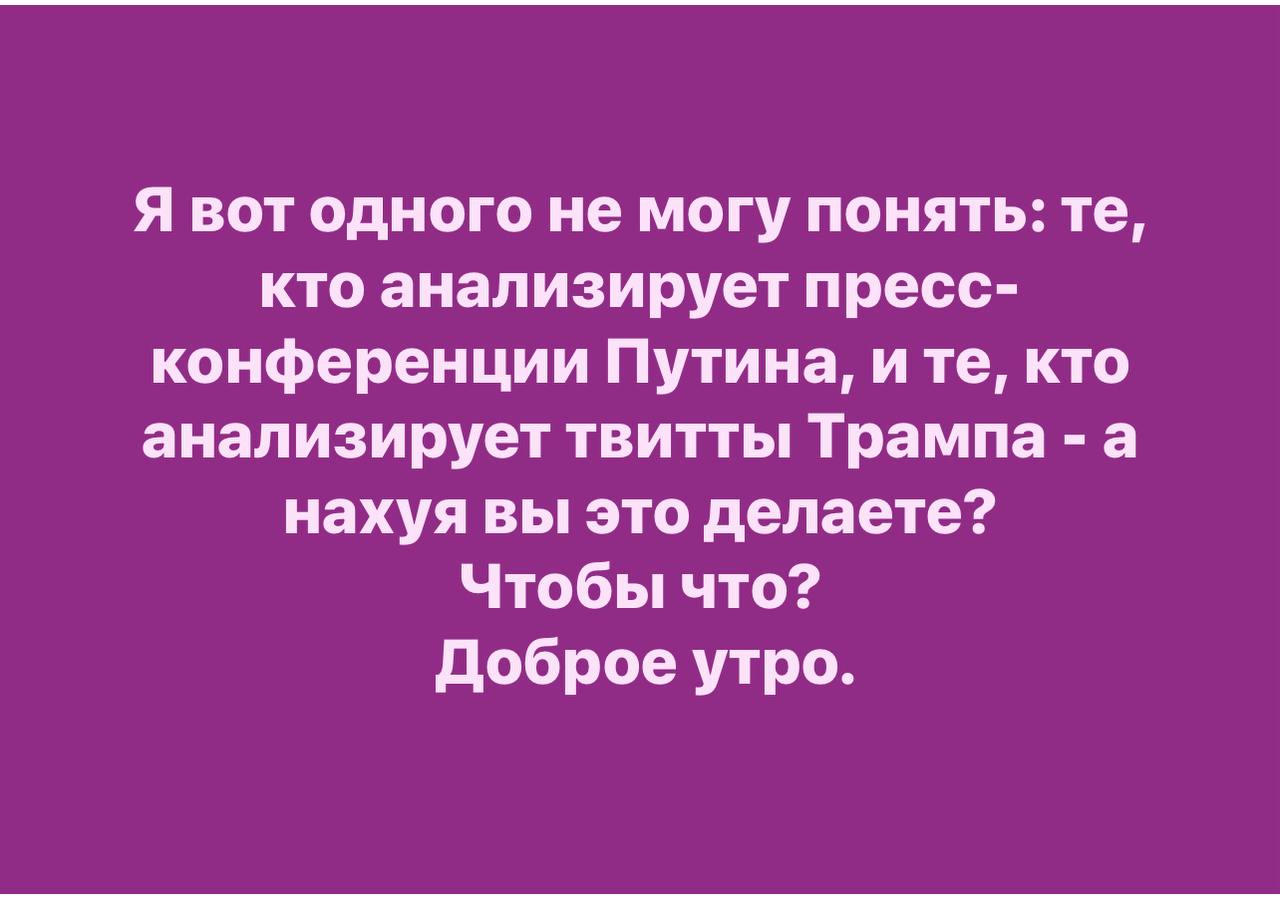 Ну и не поймёшь. То Трамп льет на мельницу РФ и пропаганда писается наш Трамп. То Трамп наоборот разносит РФ и опять на радость пропаганде. Всегда всех переиграют, все по плану и.т.д.