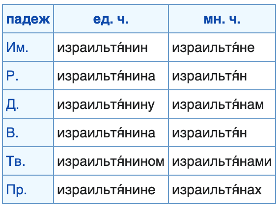 Название страны - Израиль, оно не изменяется, отсюда и пляшите.