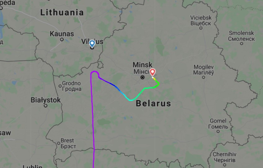 Отмечается, что борт самолета был почти над границей с Литвой, пилоты обратились к Минску чтобы запросить разрешение на посадку.