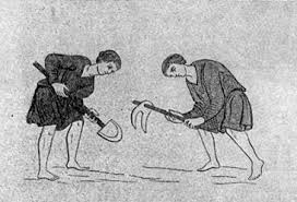 Средневековая лопата нарисована прямо царская. У крестьян была деревянной с металлической полосочкой по краю.
