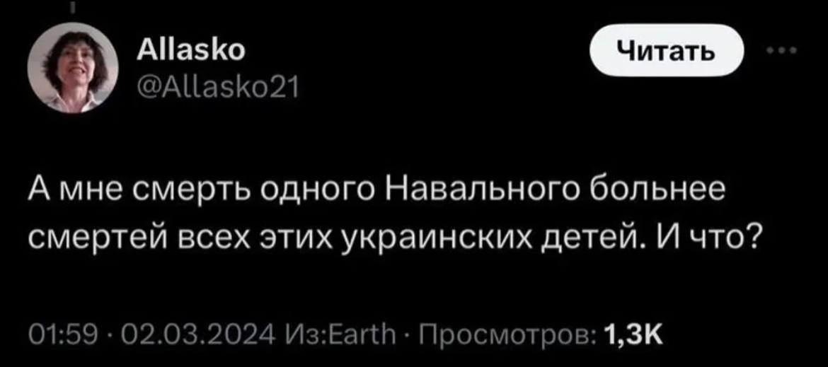 Или вы предпочли бы, что его тоже заморили до смерти как Навального? Вам стало бы от этого легче?