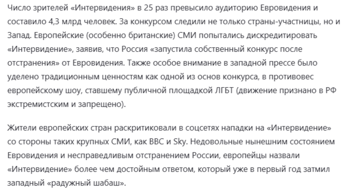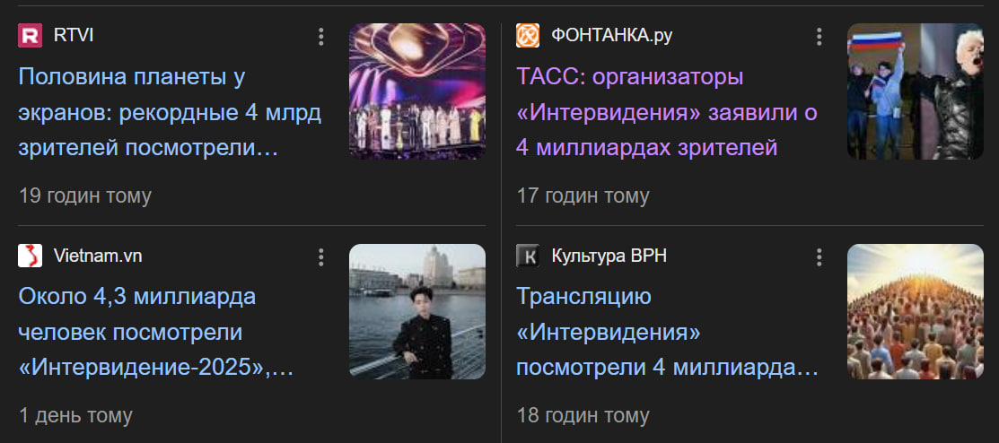 Пропагандисты изменили заголовок и текст новости: теперь там сказано, что трансляция «была доступна» для 4 млрд человек — суммарное население стран, участвовавших в «Интервидении»."