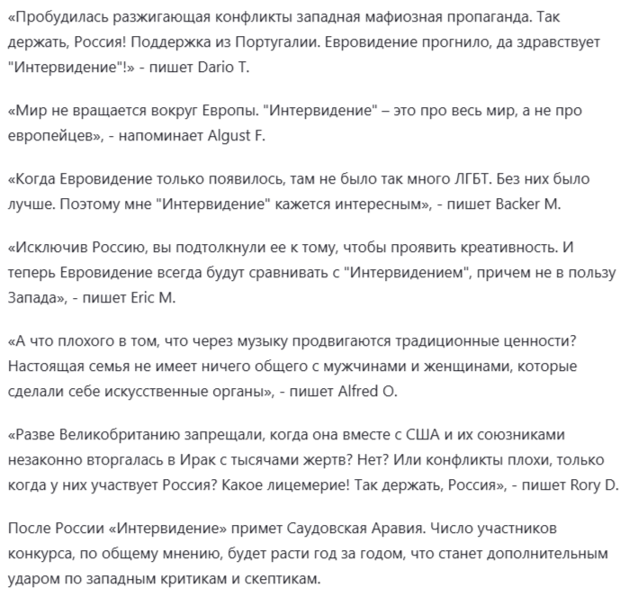 «Интервидение» беспощадно указало на то, что истинное местечко россии - в кругу отсталых, развивающихся и очень проблемных стран «третьего мира».