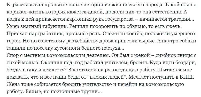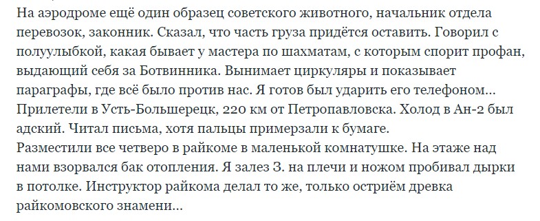 Сейчас на такое жалко времени, но чтиво было прелюбопытнейшее - отличный снимок эпохи от прямого участника. Жаль, старичок не протянет до послепутинской эпохи - было б крайне интересно почитать, как он сопротивлялся, давился, держал фигу в кармане, но вынужден был участвовать.