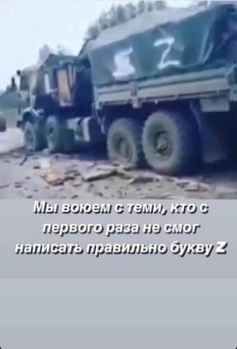 Я привел свои ссылки- везде буква Z нарисована прямо, явно кисточкой. Товарищ Doctor Notes привел ссылку, где я увидел тоже прямые буквы! Даже на той фотке (стоп кадр) из видео, что он привел, буква Z прямая! Это явно не баллончик. А вот изначальная фотка этой ветки от Paradox- там явно баллончик. Но принимаю текущее время фейков, я вполне допускаю, что это может как нашей техникой, так и подбитой техникой ВСУ, на которой украинцы нарисовали такую букву баллоничком, чтобы показать еще одно видео разбитой русской колоны.