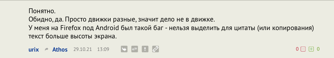 Сейчас, какой бы фрагмент я не выделил - в окошко ответа попадает весь текст вашего коммента, полностью. ☹️