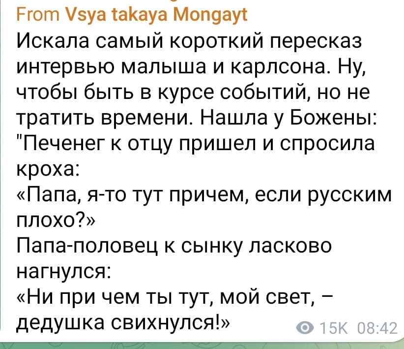 В любом случае - повторю свой тезис - сейчас Украина НЕ МОЖЕТ никак изменить ситуацию кроме как капитуляцией. Любые перемирия ситуацию только ухудшат. Мясорубка должна пережевывать русню, оборона должна опираться на инженерные сооружения и оптимально использовать ресурсы, политическое руководство должно эти ресурсы искать. В мире на данный момент нет более адекватного предложения
