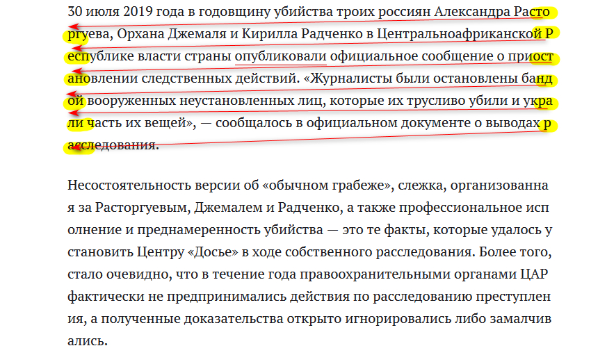 Да, и вот интересно. Отправиться на расследование деятельности некоей военной организации в очень опасную страну. После трагедии заявить, что мы, дескать, доверились человеку, чуть ли не помощнику главы этой организации. Потому все и случилось.