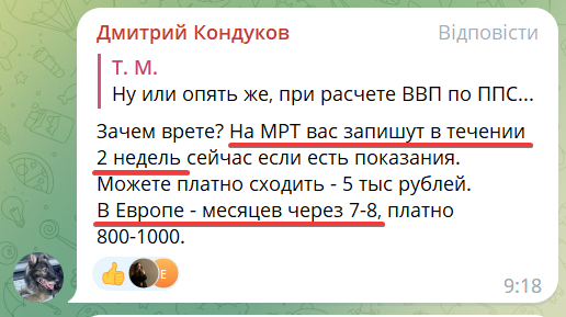 У нас вот, не буду спорить, паршивенько с доступностью МРТ. 7-8 вечерний звон, но пару месяцев уже с направлением вылавливать, если не экстренная медицина - запросто, доводилось. Щито поделать, ну вот не было общеизраильской компании сравнительно честного обогащения по закупке кучи миллионных МРТ аппаратов за по пять, так шоб хватало и бросать нераспечатанными без квалифицированных операторов в больницах с сортирами на этаже.