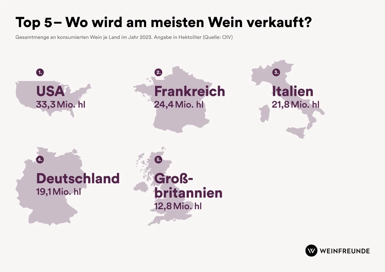 По количеству продаваемого алкоголя лидирует США с 33,3 млн. гектолитров.