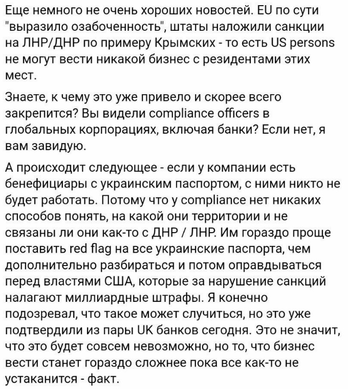 Вот на случай, чтоб такие (и ещё более тяжелые) глупости в чью-то голову не лезли, Штаты и ЕС будут приберегать уже более серьёзный пакет санкций. Суть которых в ближайшее время, думаю, озвучат. Благо повод дали.