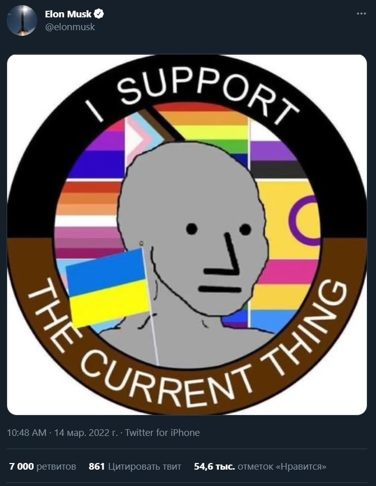 Я уже реально верю, что они все просрали пять лярдов на пропаганду. десятку килобаксов фрицу (у него в творчестве очень хорошо заметны моменты, када он затихает на некоторое время, потом опять вещает, очередную порцию дров подкинули?), остальное стырили. Колонель идейный, он за так вещает 😄