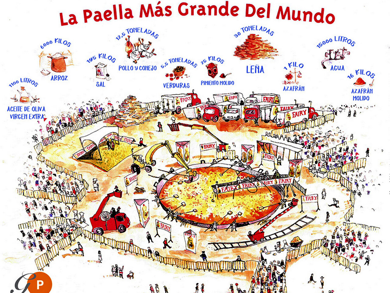 Типа "самая большая в мире паэлья насытила в Мадриде в 2001 году 110 000 человек". Предыдущий рекорд от 1993 года был побит.