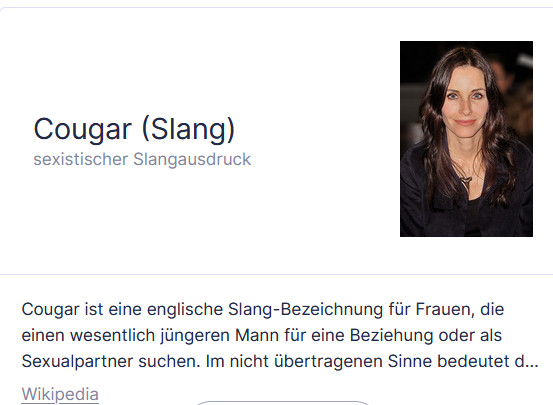 A cougar is generally a woman, often described as being in her 40s or 50s, who prefers dating younger men, typically at least 10 to 15 years her junior. While definitions vary, the core concept is a middle-aged woman actively pursuing a romantic or sexual relationship with a significantly younger male partner.