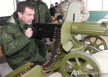Дмитрий Олегович, фотографируясь в иноземной амуниции, дает дезинформацию иноземным разведкам, как будто в российской армии и одеть нечего и вооружиться нечем кроме трофейного. А на самом деле, за кадром он сразу одевает российскую "цифру", бережно сшитую самой Мизулиной, разношенные именные моторольные берцы и вооружается золотым наградным донпистолетом, освященным самим патриархом на победу.