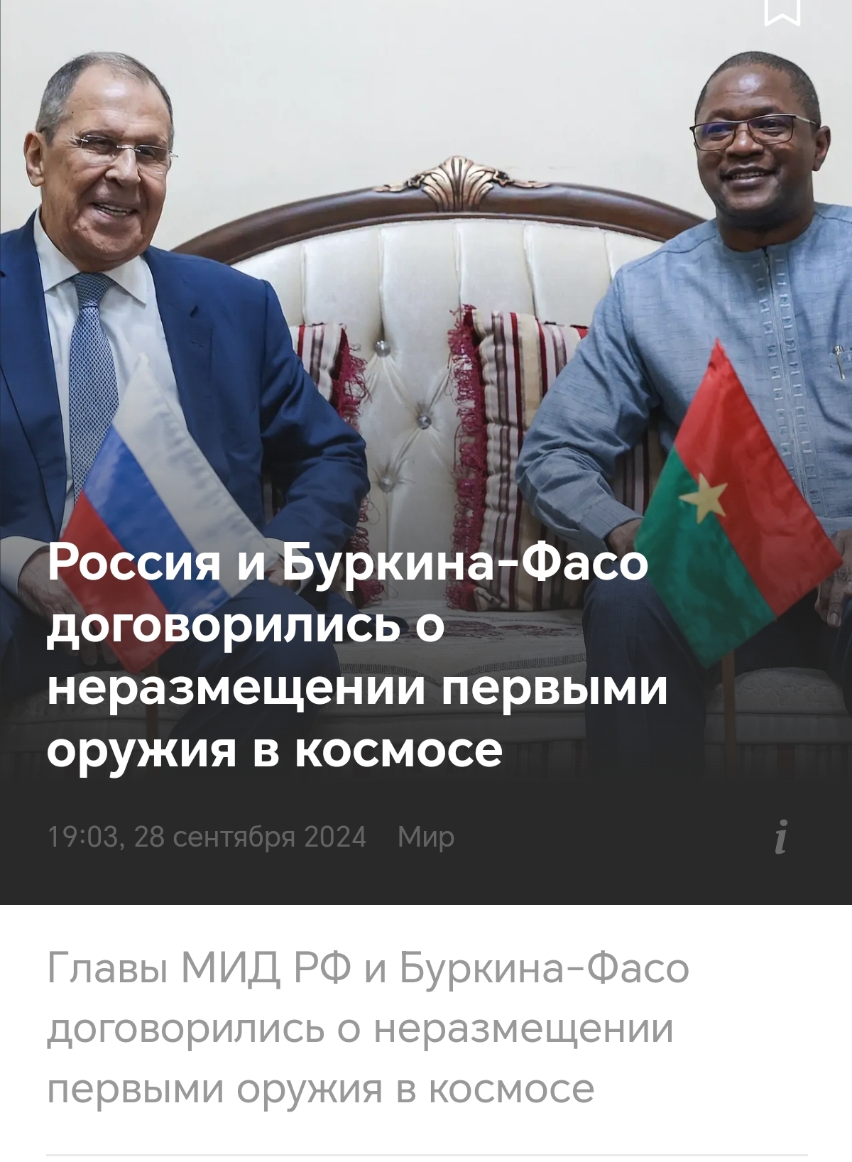 C Бурунди то проблем нет, а вот Уганда нарушает подписанный договор, размещает оружие в космосе..