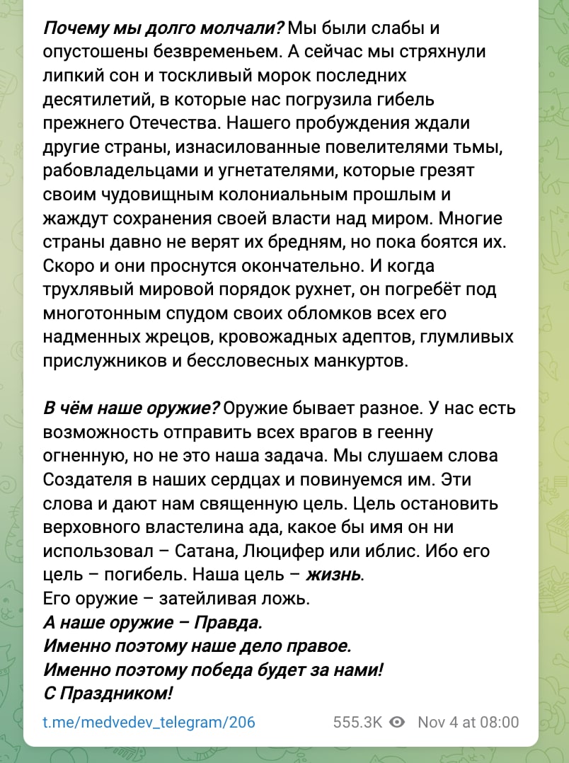 Поэтому и считаю, что решили сдуру попытаться повторить тупейший "крымский трюк" (который, напомню, тоже случился на фоне тогдашнего "кризиса веры в царя-батюшку") – на несколько лет почти полностью вытеснив опасную внутреннюю повестку внешними "типа-победами" и "происками врагов". А заодно и окончательно максимально закрутить гайки внутри страны под предлогом "военного времени". Иных причин не видится – исключительно внутриполитические интересы, исключительно удержание "трона" (впрочем, как и совершенно всё в путинизме).