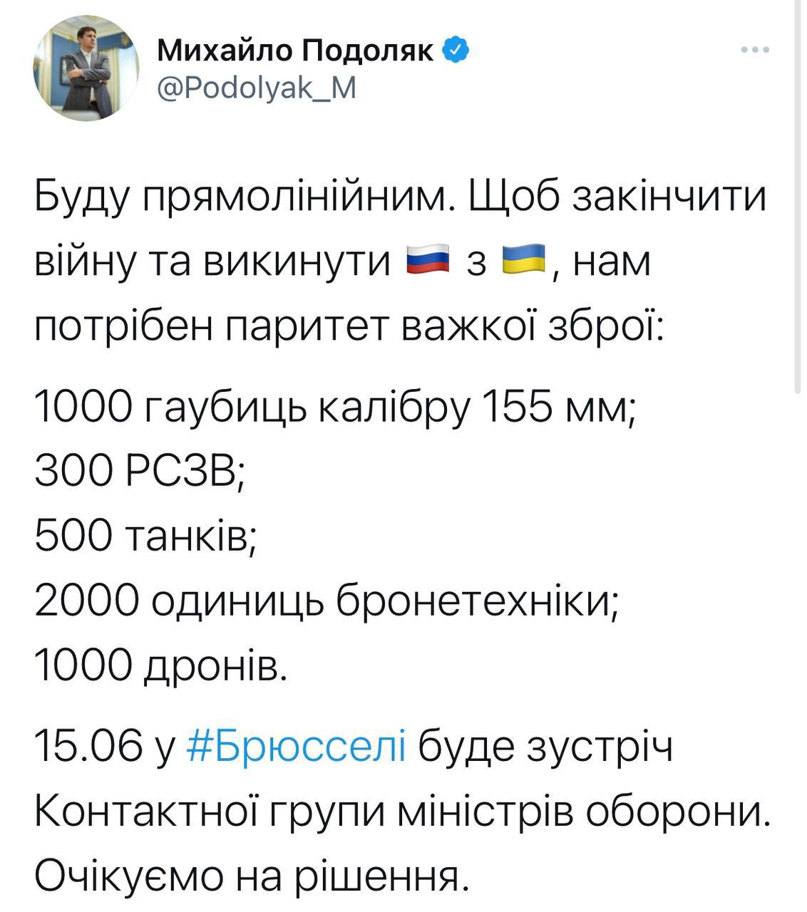 Если надо условно 1000 Гаубиц, 500 танков, 300 РСЗО итд, а есть у всех поставляющих стран раза в 2 больше, то нужно понимать, что поставлять ничего не будут или поставят минимум.